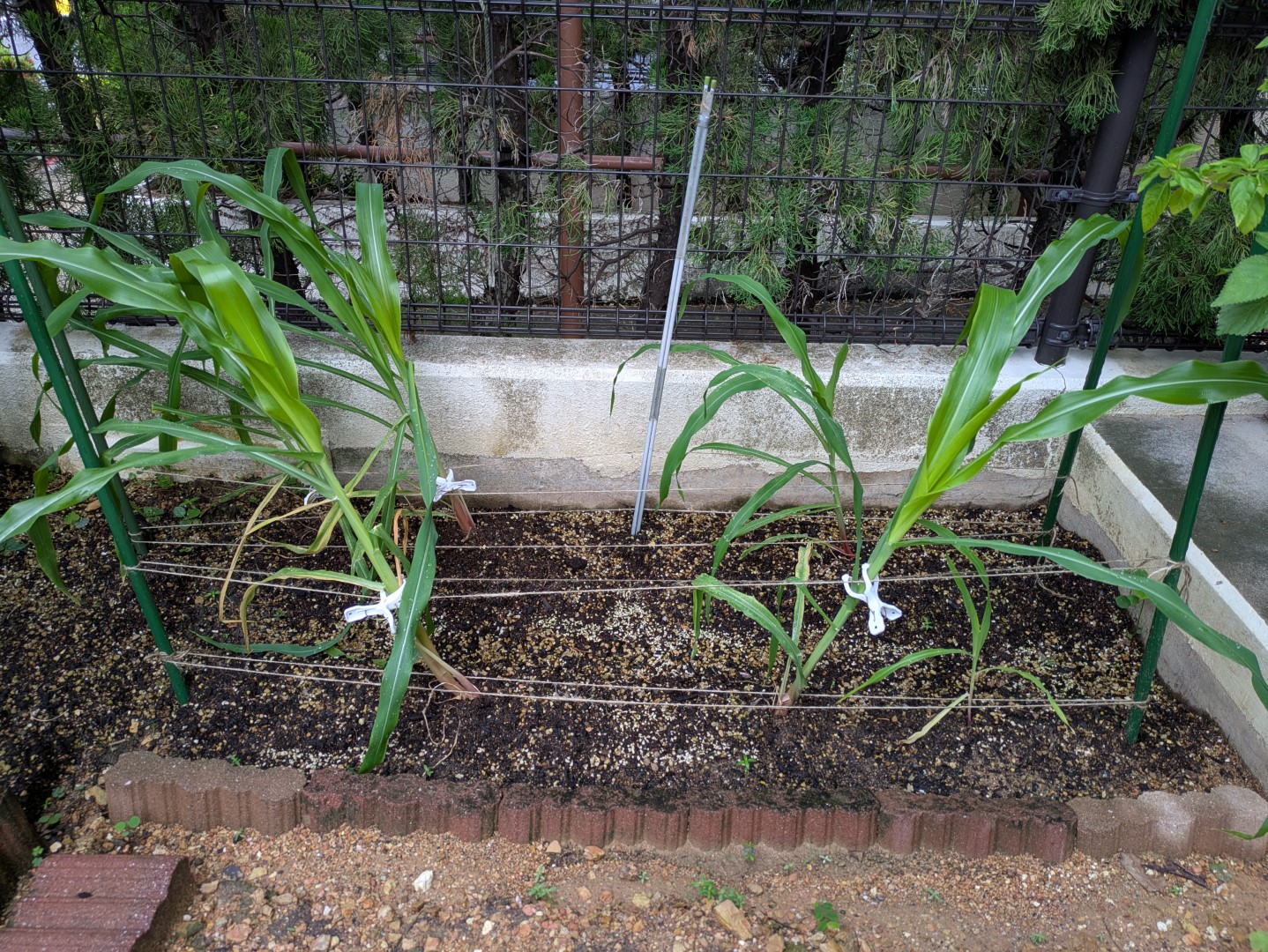とうもろこしちゃんの安定化大作戦! とうもろこし X Facebook はてブ Pocket LINE コピー 2025.07.112025.10.15 支柱とロープでしっかり支えてるつもりだったけど……まだちょっとグラグラ💦 そこで!💡救世主・洗濯ばさみの登場〜!!🧺✨ ロープととうもろこしをパチンと挟んであげたら──なんと!安定度がぐーーーんとアップ!🙌🌾 これで風が吹いても大丈夫そう!とうもろこしちゃん、しっかり踏ん張っておくれ〜💪💚